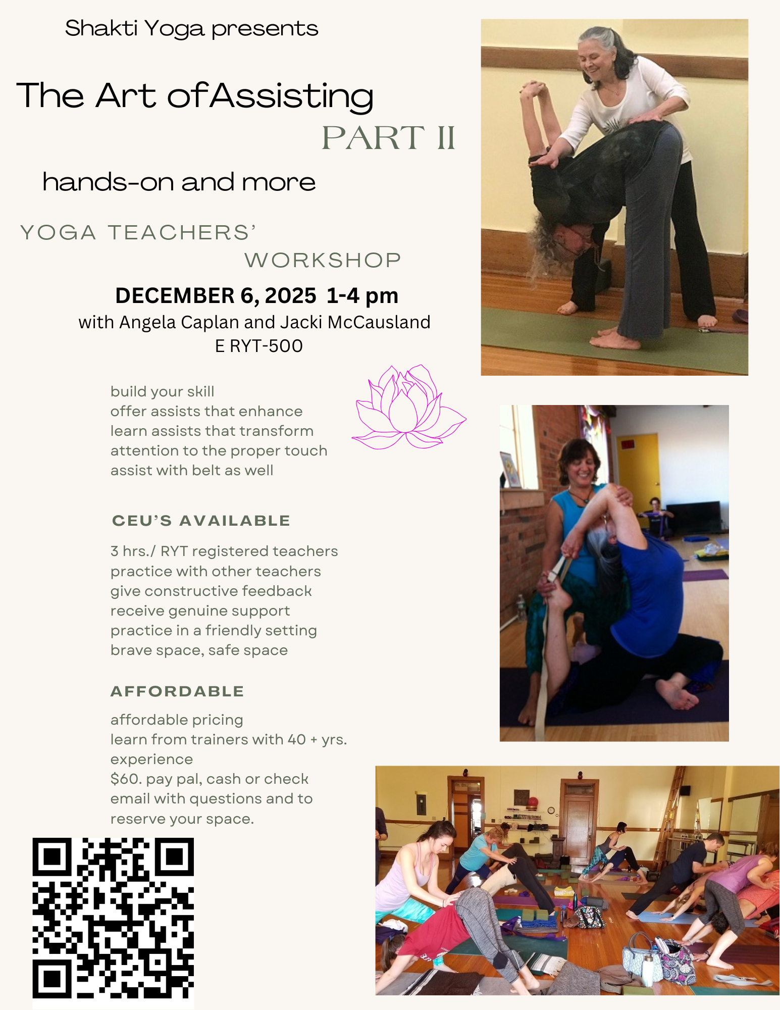 You may register via PayPal (button below), cash or check in person or mail to: Shakti Yoga, PO Box 515, Geneseo, NY 14454. Email us to reserve your spot.